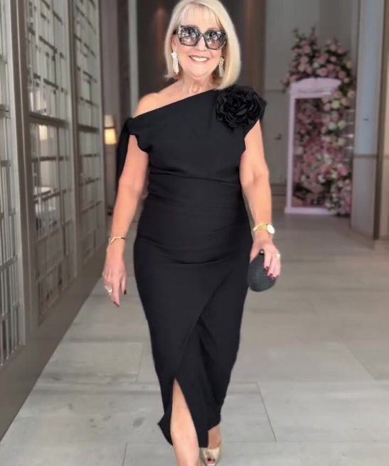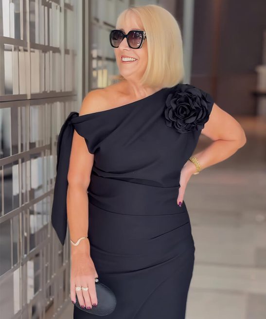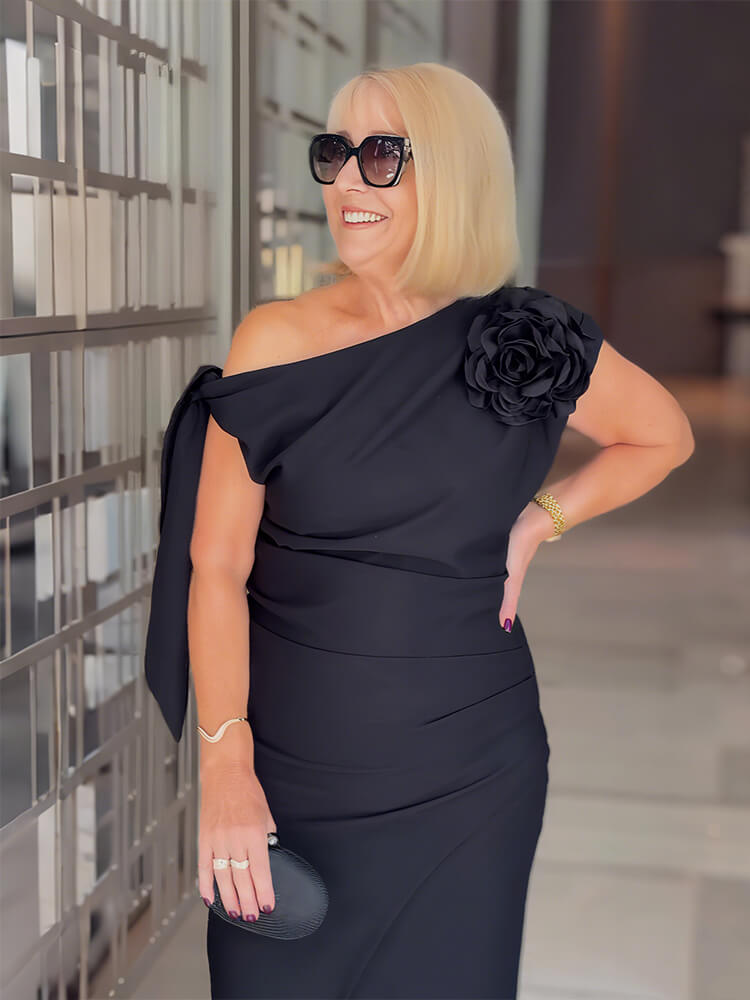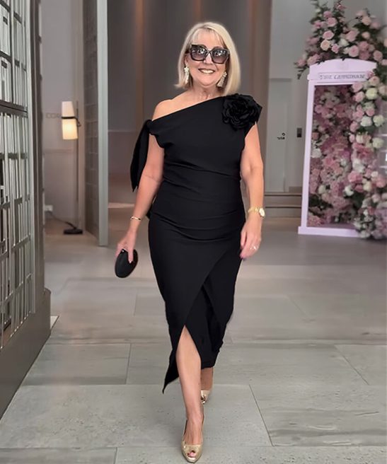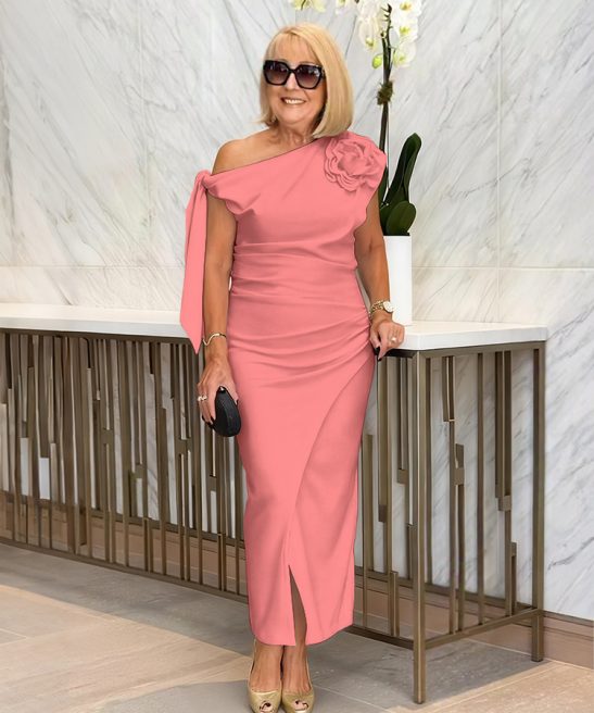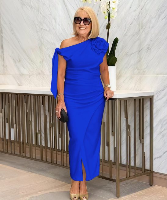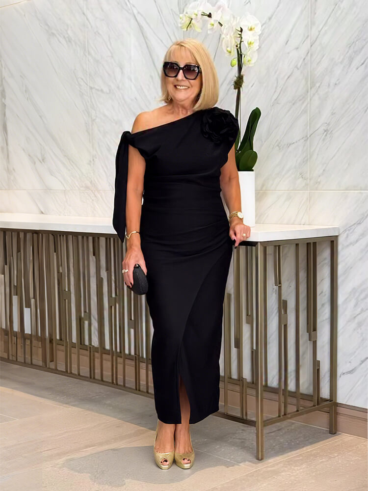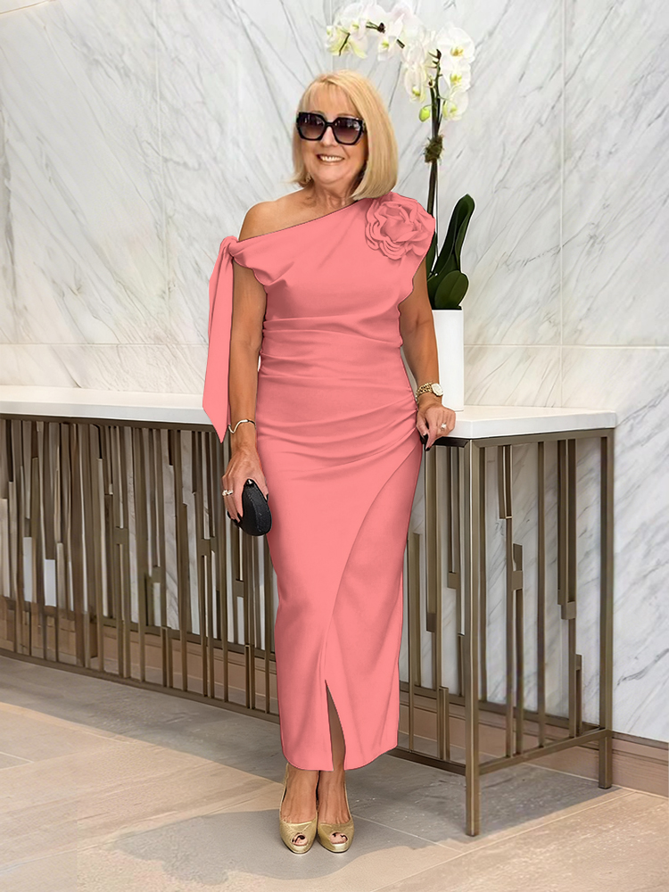 Details: Pleats/Slit/3D Floral Embellishment