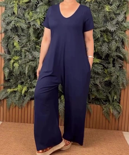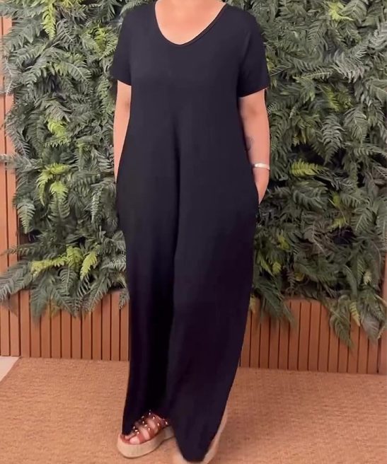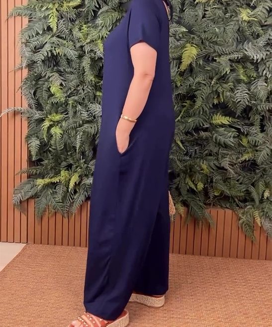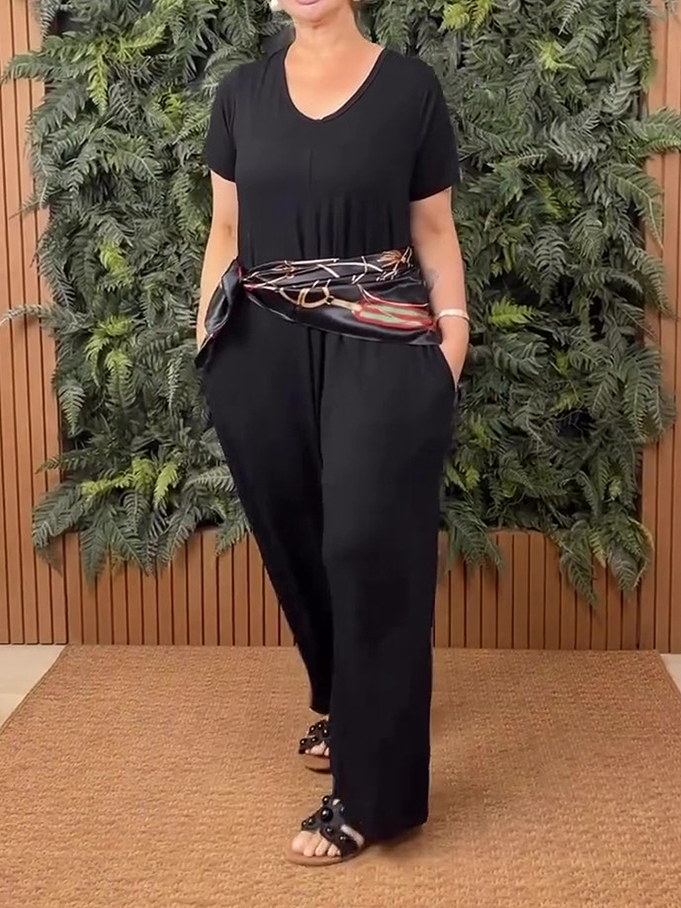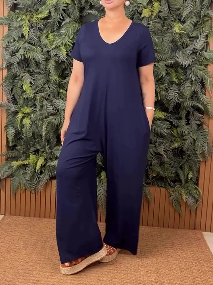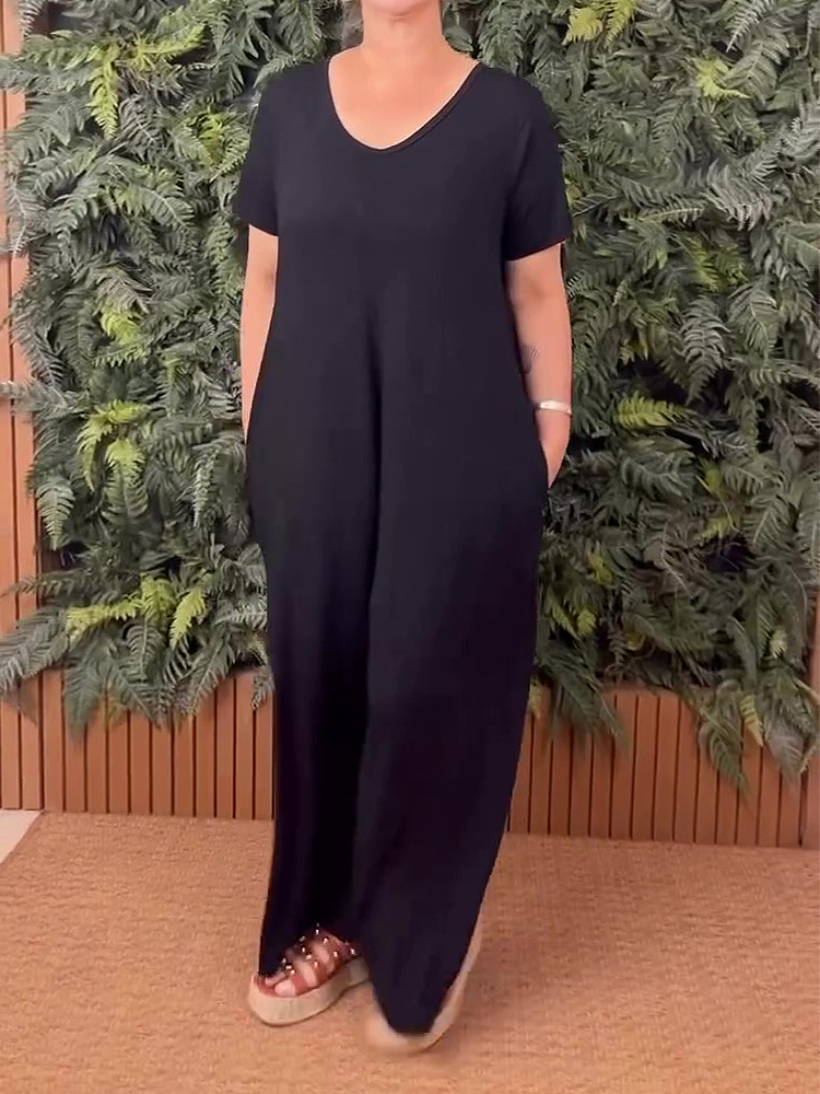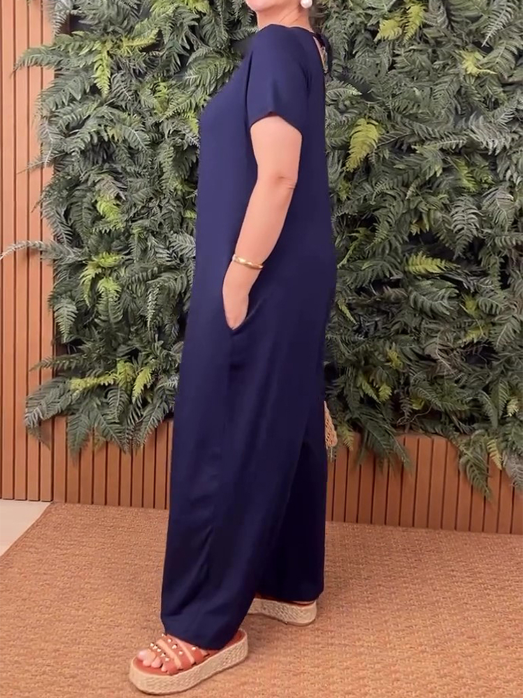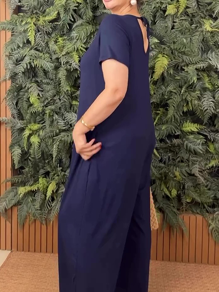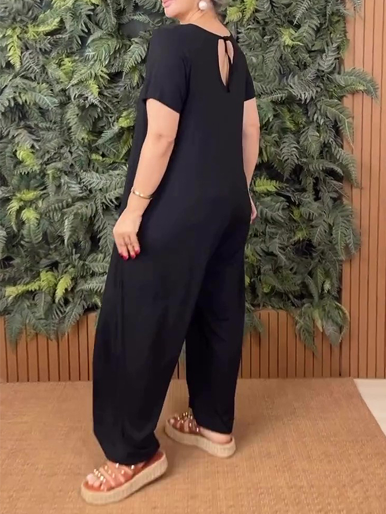 Plus Size Crew Neck Short Sleeve Jumpsuit