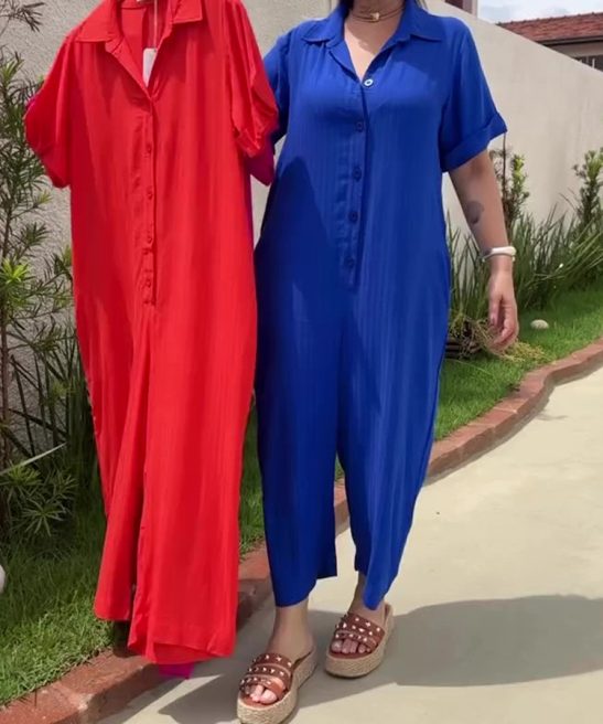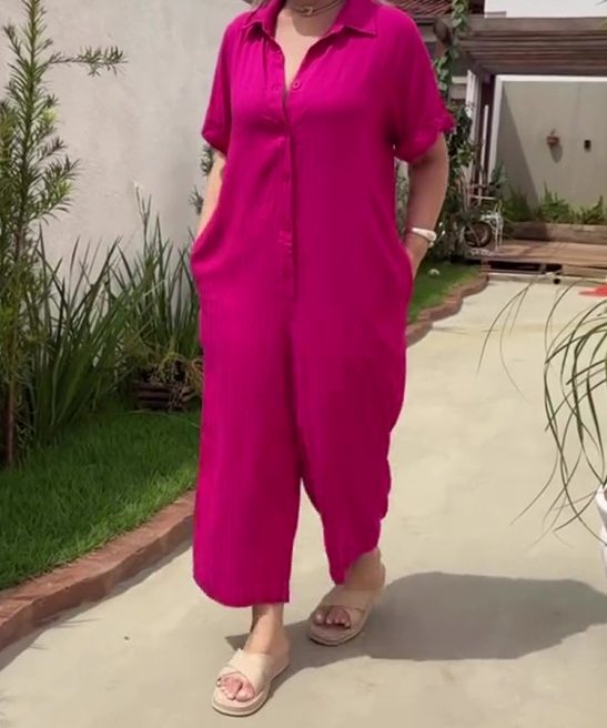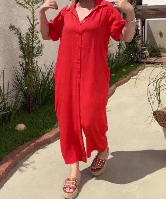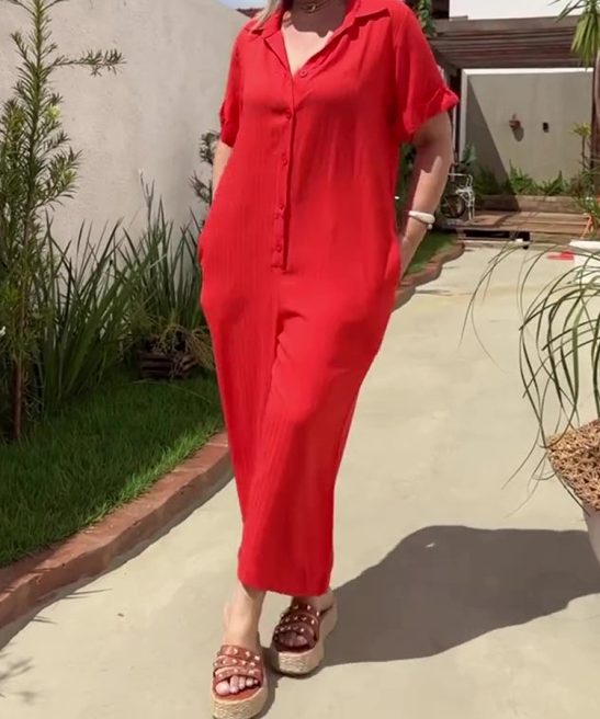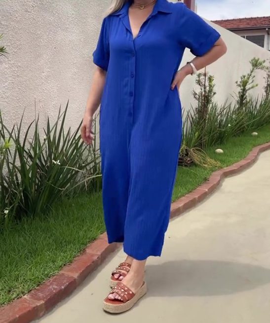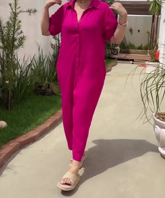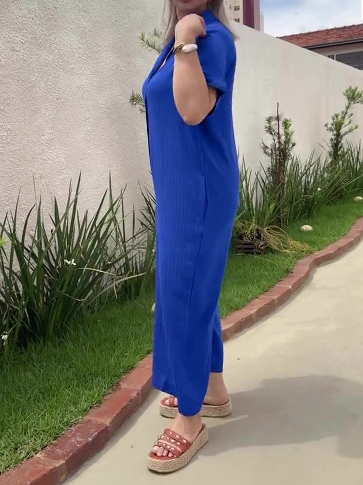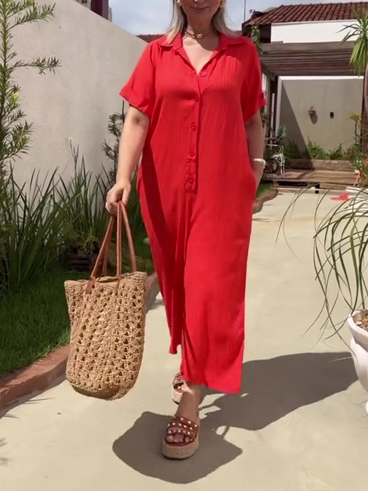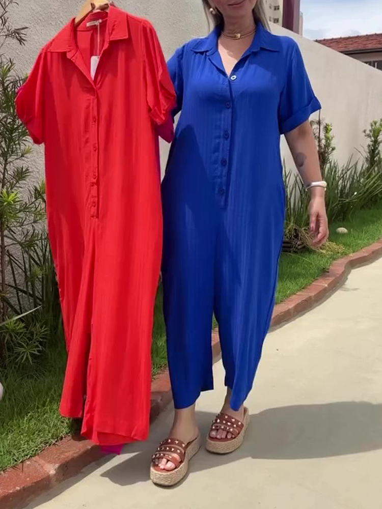 Plus Size Shirt Lapel Button Down Short Sleeve Jumpsuit
