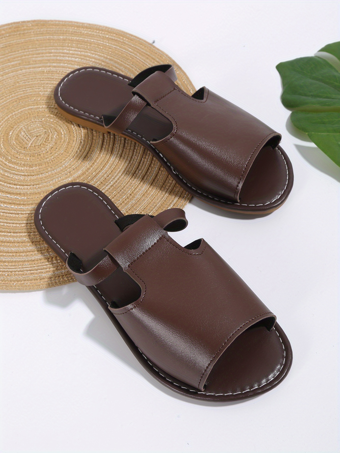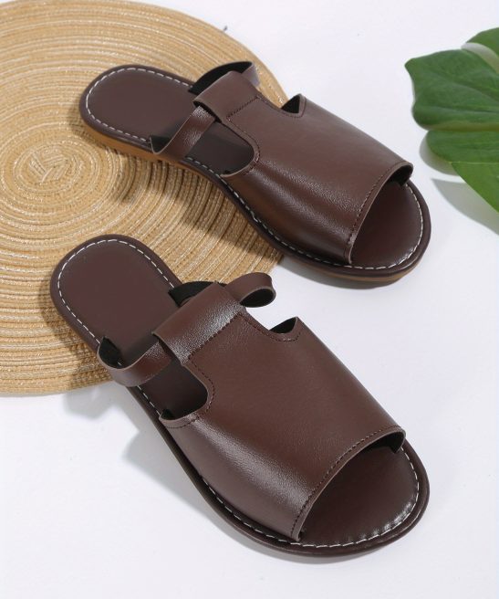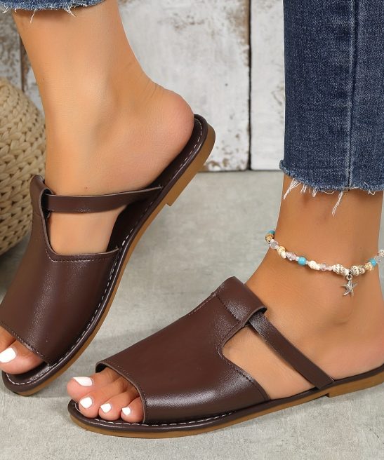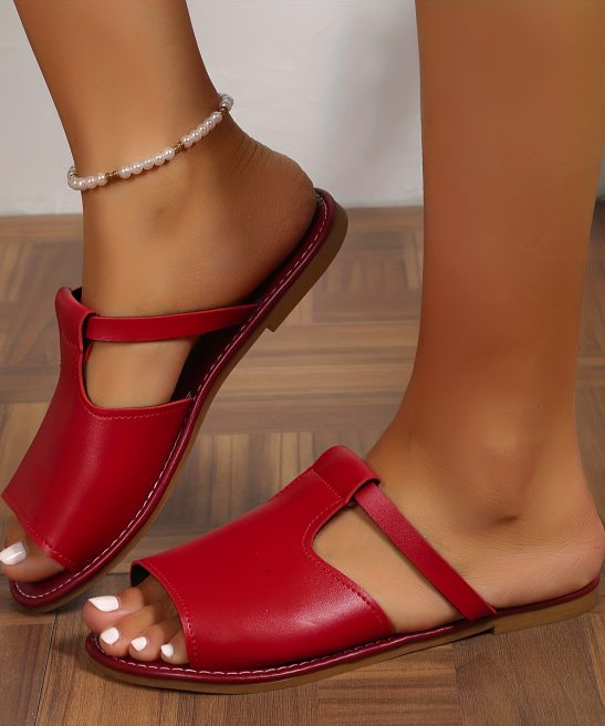 Women’s Solid Color Slide Sandals, Casual Cutout Slip On Outdoor Shoes, Comfortable Faux Leather Shoes